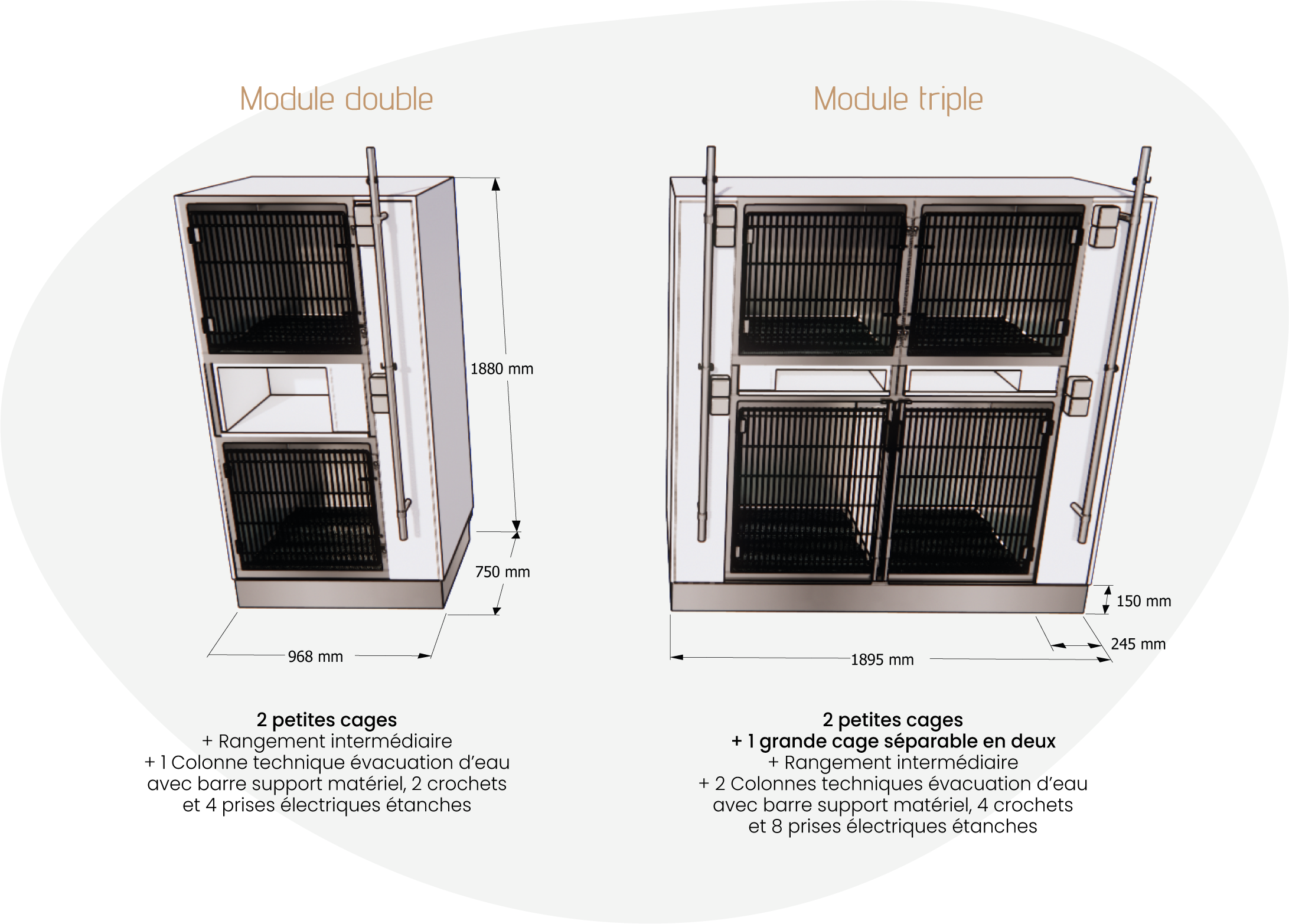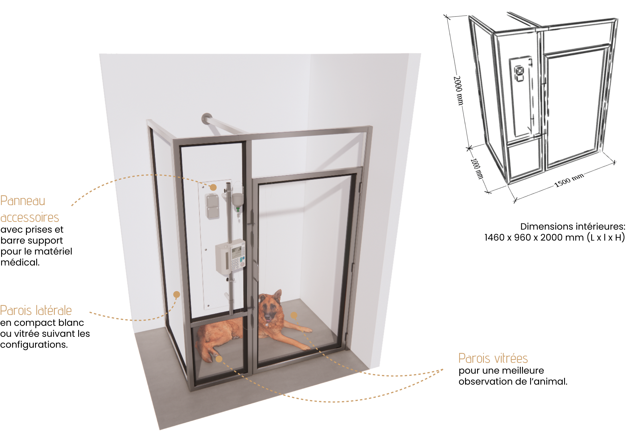 Découvrez nos cages d’hospitalisation pour chiens, conçues pour optimiser l’hygiène et le confort au sein de votre clinique vétérinaire.
