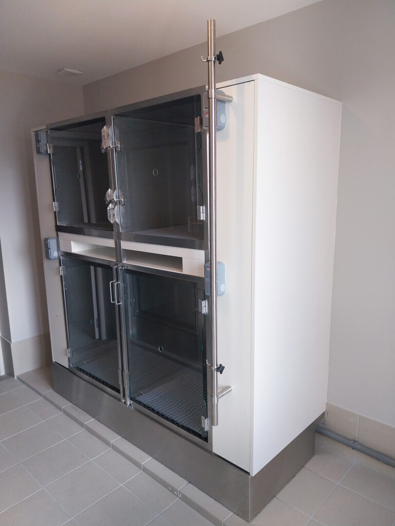 Découvrez nos cages d’hospitalisation pour chiens, conçues pour optimiser l’hygiène et le confort au sein de votre clinique vétérinaire.