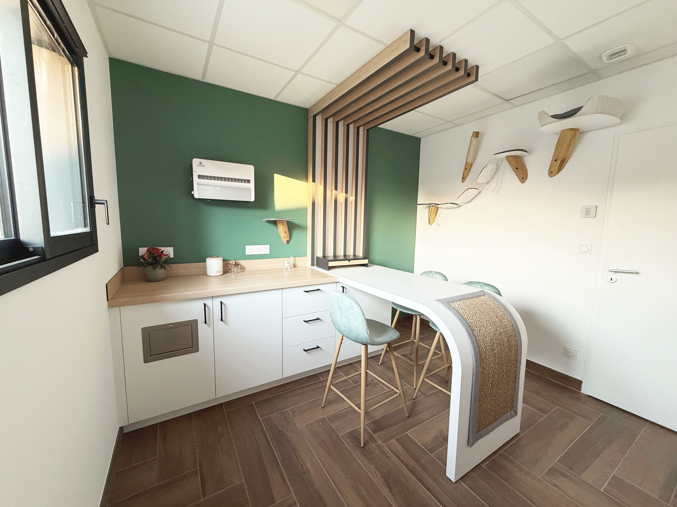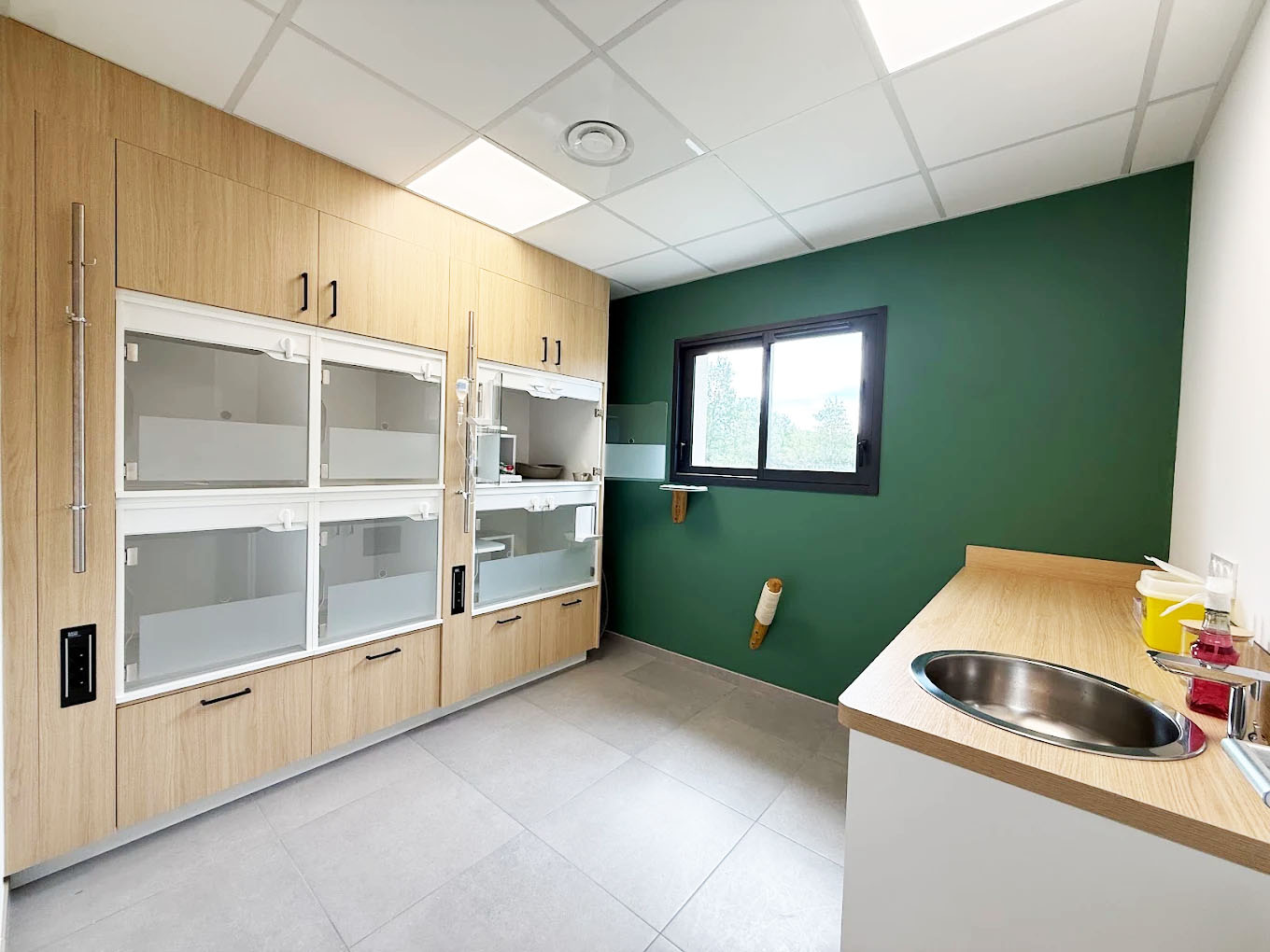 Nous avons accompagné les équipes de la clinique vétérinaire Cryodog de Saint-Jean-d’Heurs (63), dans la création de leurs espaces de travail, en intervenant à chaque étape : de la conception de l’agencement à la fabrication et à l’installation.