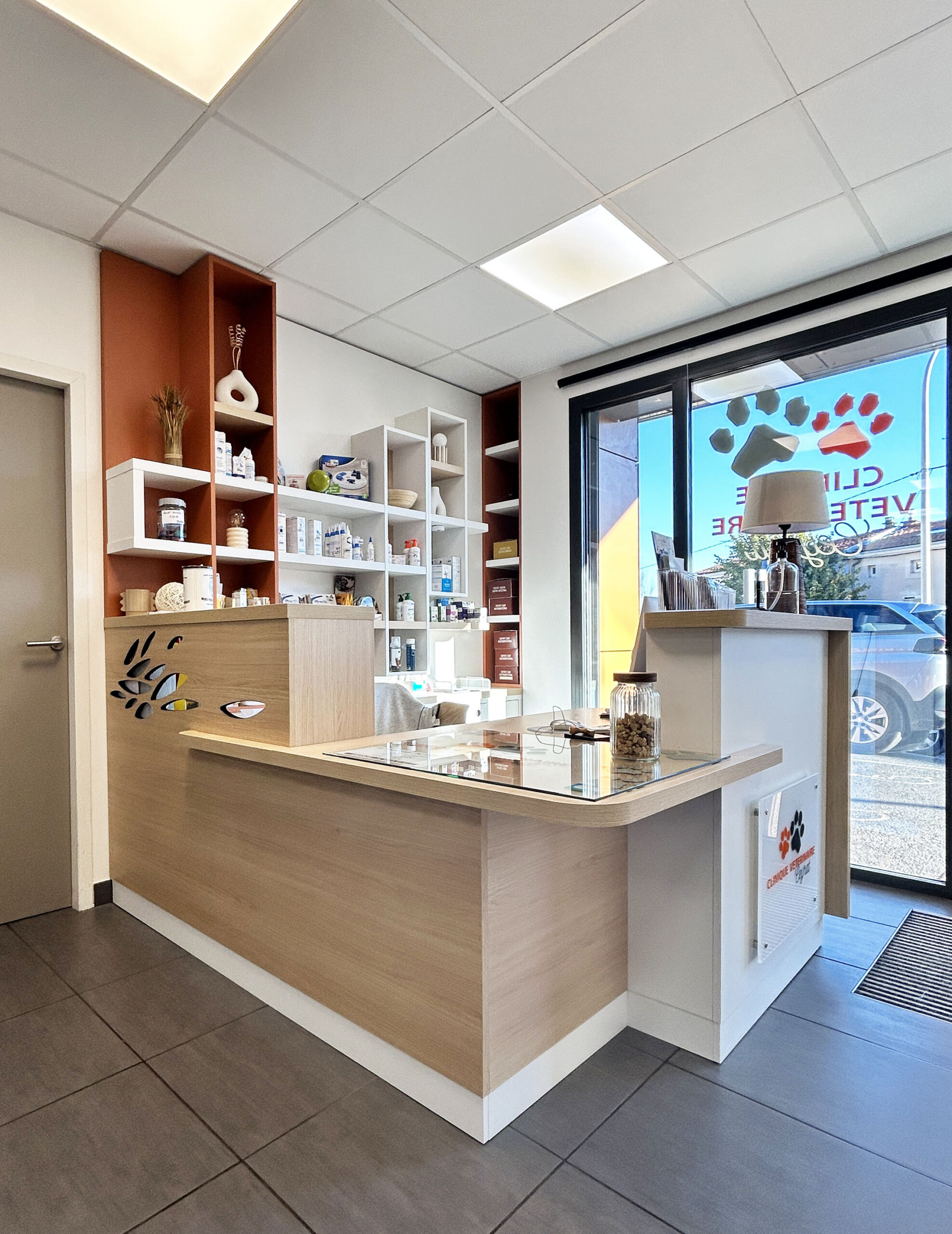 Nous avons créé un environnement plus agréable et moins stressant pour les animaux et leur propriétaire. Les espaces ont été pensés pour faciliter le travail de chacun tout en s’adaptant aux contraintes des lieux. L’intérieure et l’extérieure de la clinique s’harmonisent afin de créer une unité.