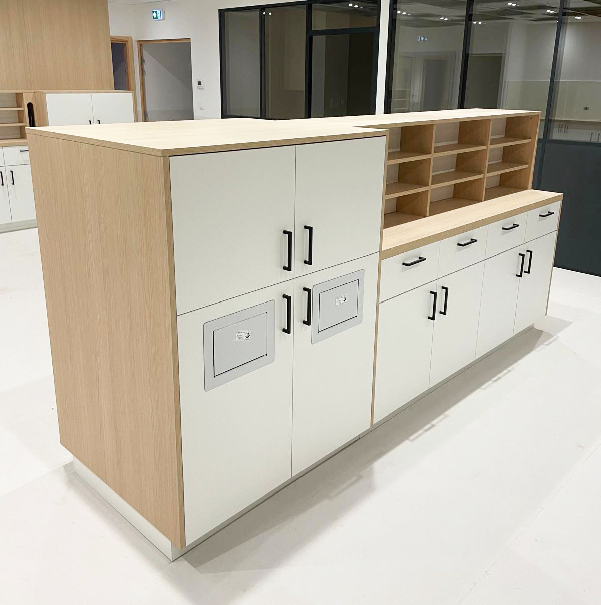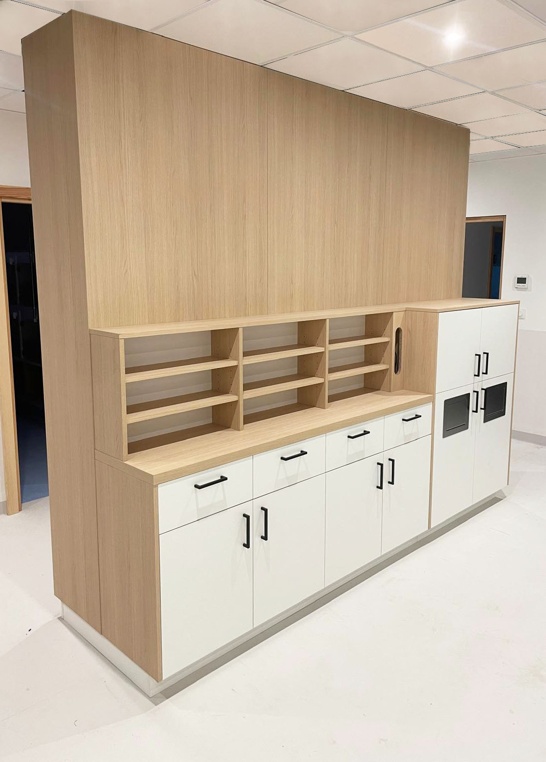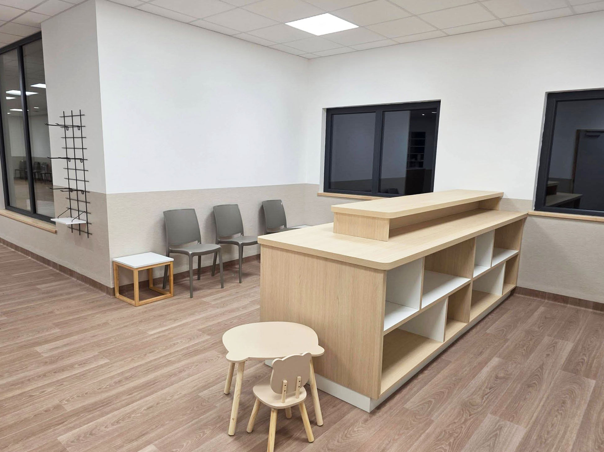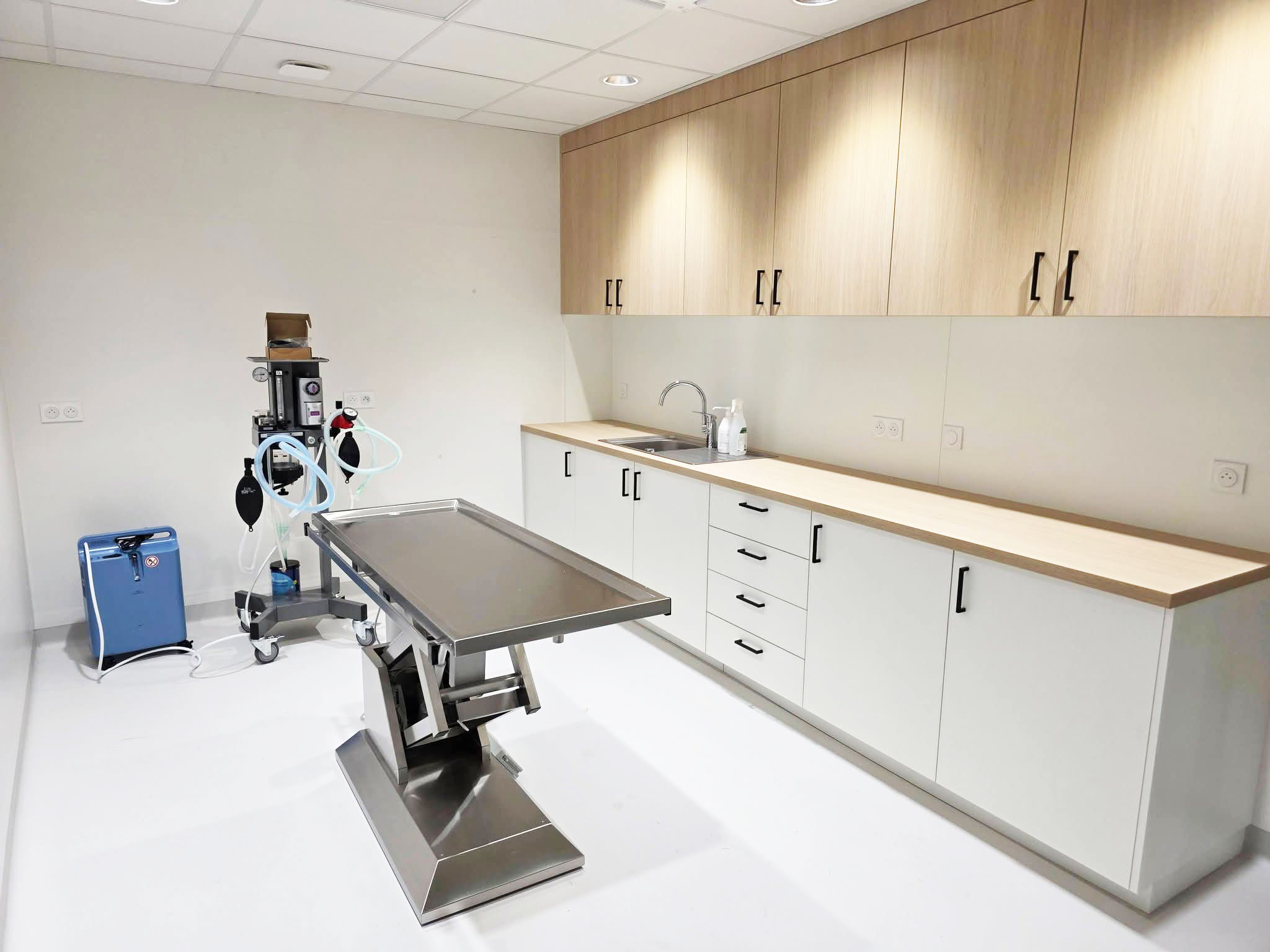 Nous avons accompagné les équipes de la clinique vétérinaire du Grand Champ à Vagney (88), dans la création de leurs espaces de travail, en intervenant à chaque étape : de la conception de l’agencement à la fabrication et à l’installation.