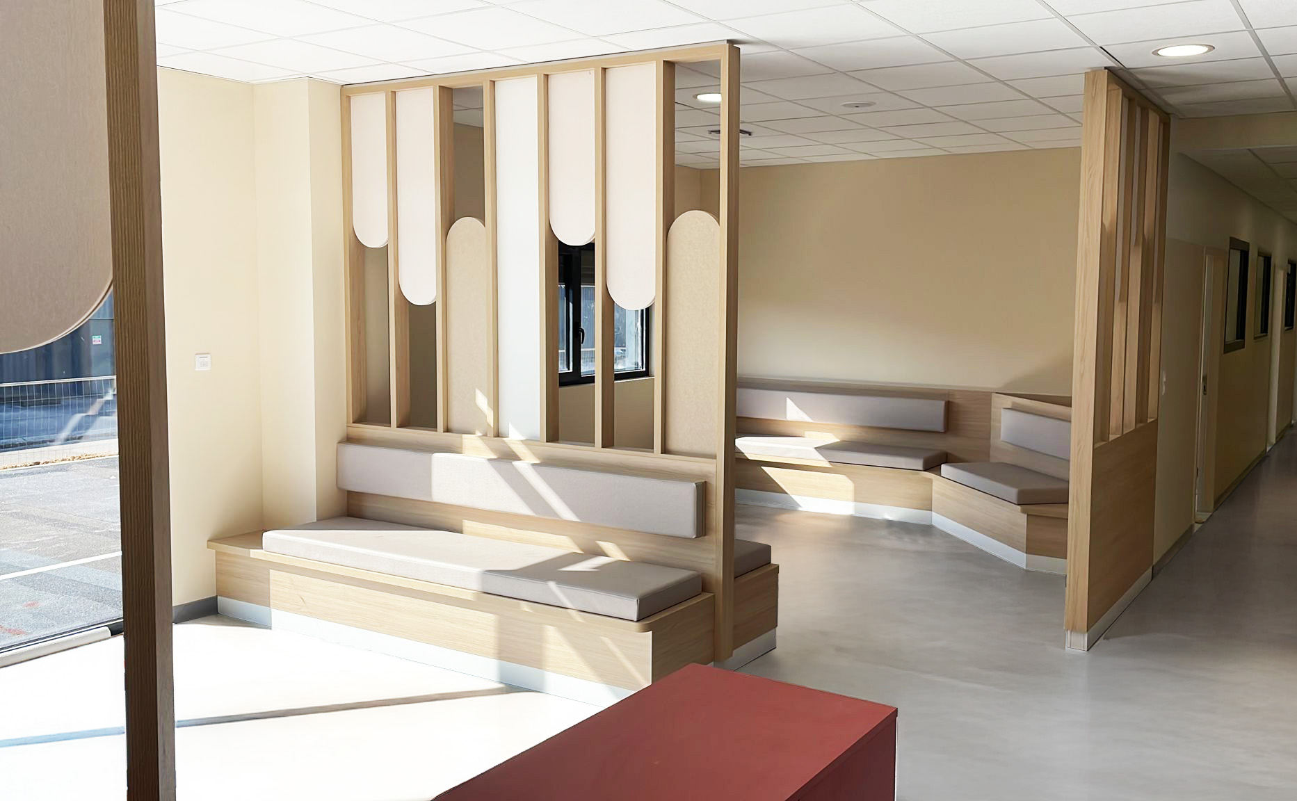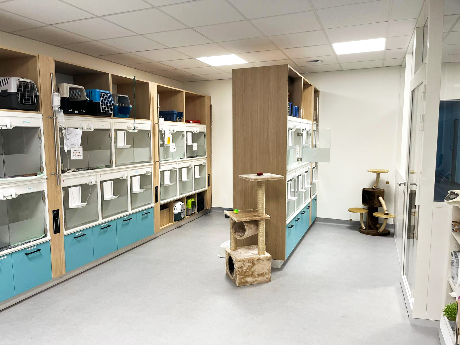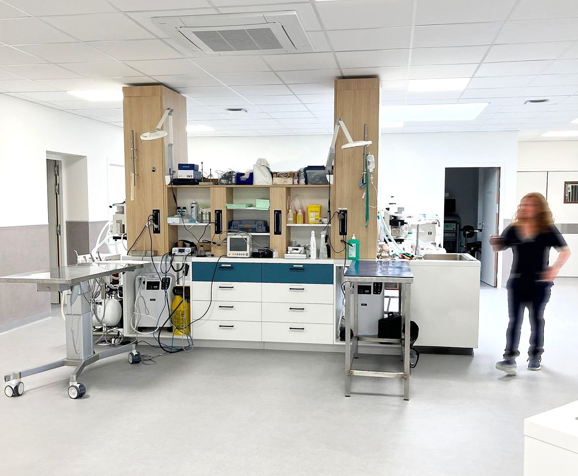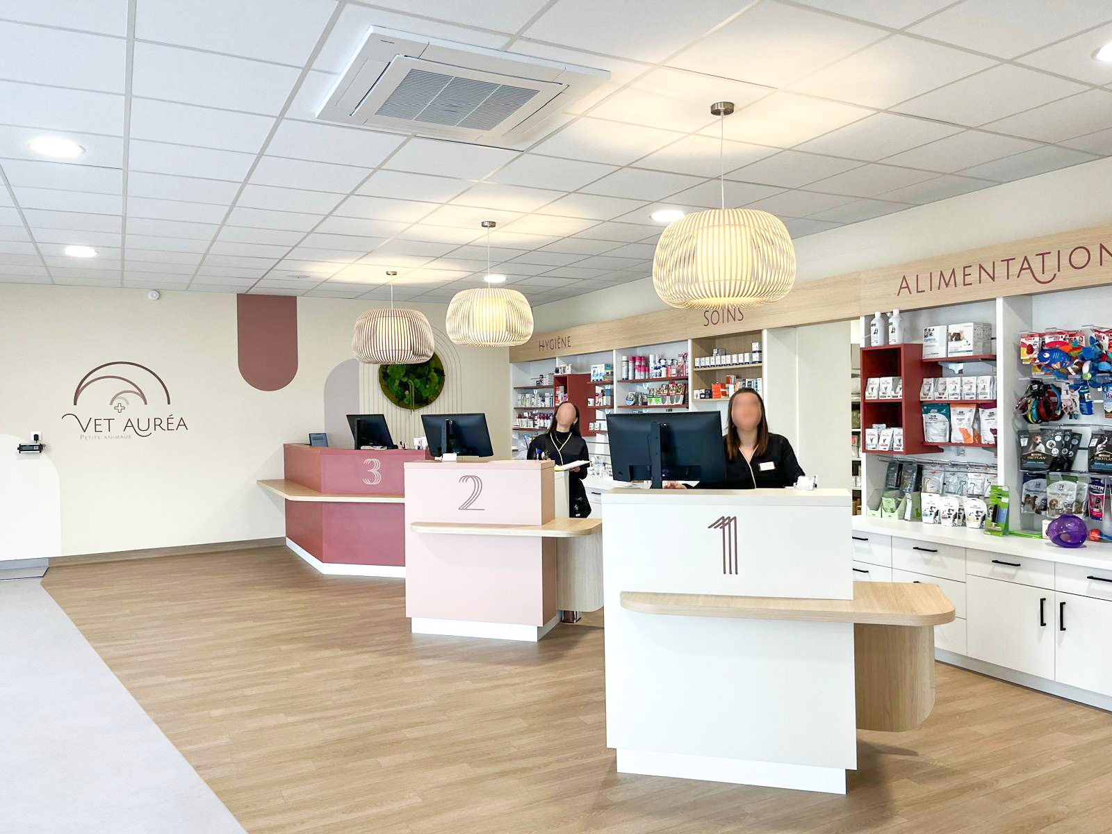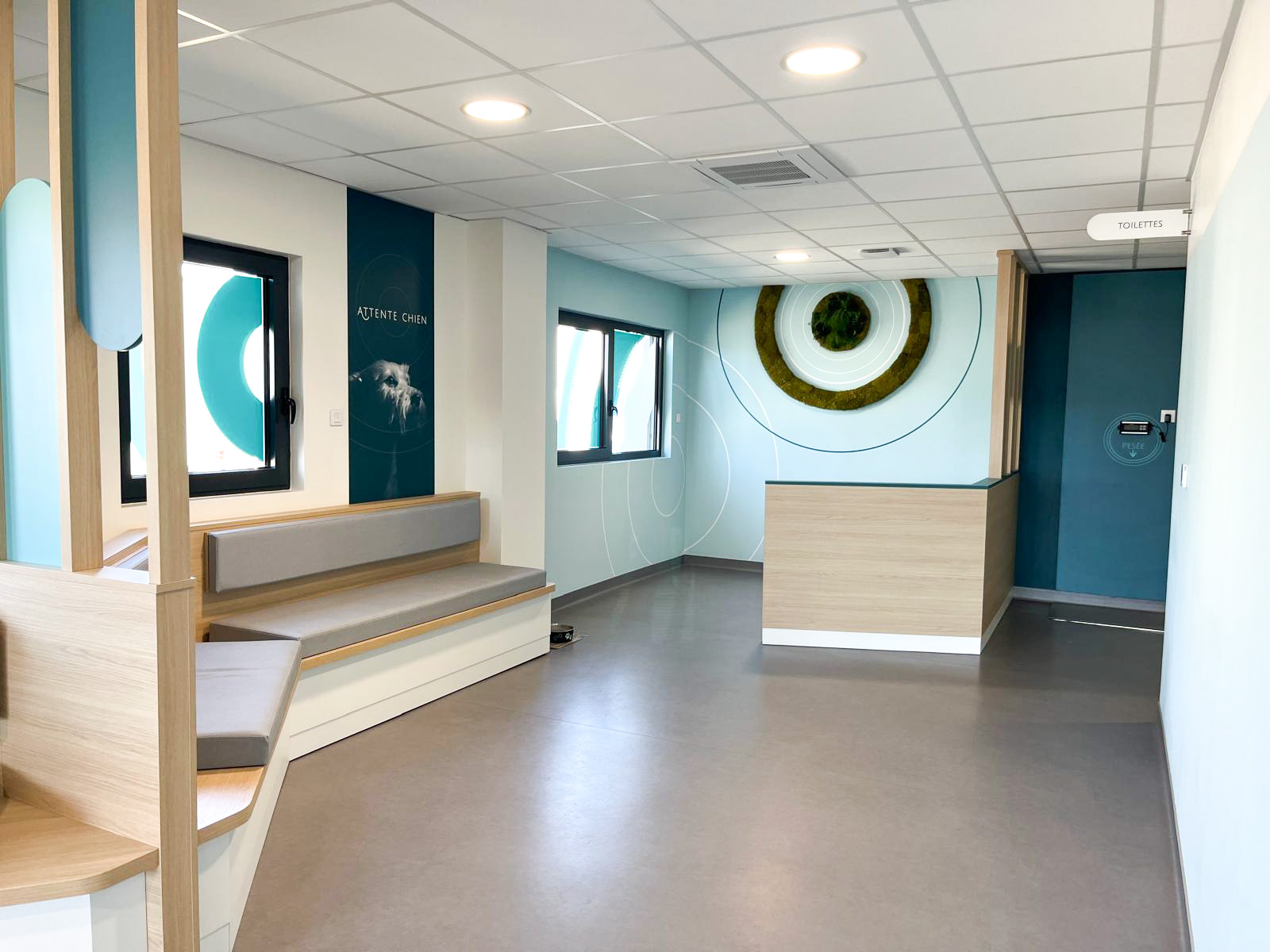 Nous avons accompagné les équipes de la clinique vétérinaire Vet’Auréa de Dole (39) dans la création de leurs nouveaux espaces de travail, depuis la conception de l’agencement jusqu’à la fabrication et la pose. Structurée en trois pôles, « petits animaux », « grands animaux » et « urgences », la clinique a bénéficié d’un aménagement pensé pour optimiser la circulation entre les différents services, tout en offrant un accueil plus fluide et apaisant pour les animaux et leurs propriétaires. Les espaces techniques ont été soigneusement conçus pour offrir un environnement de travail fonctionnel et ergonomique aux équipes, contribuant ainsi à améliorer la qualité des soins prodigués au quotidien.