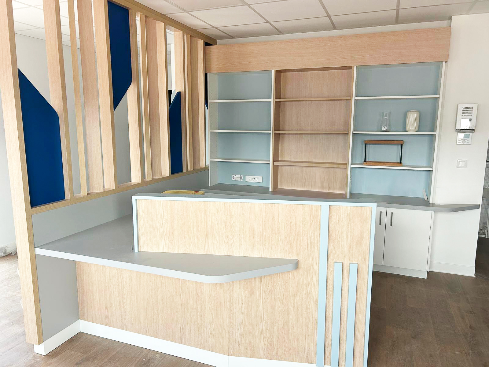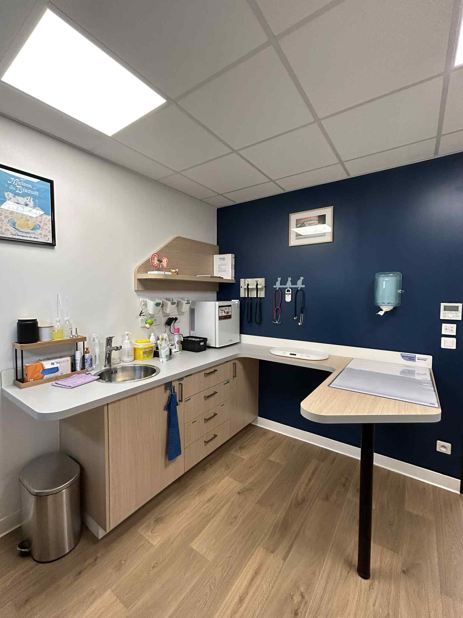 Nous avons accompagné les équipes de la clinique vétérinaire Vet&Co à Saint-Pierre-Eglise (50), dans la création de leurs espaces de travail, en intervenant à chaque étape : de la conception de l’agencement à la fabrication et à l’installation.
